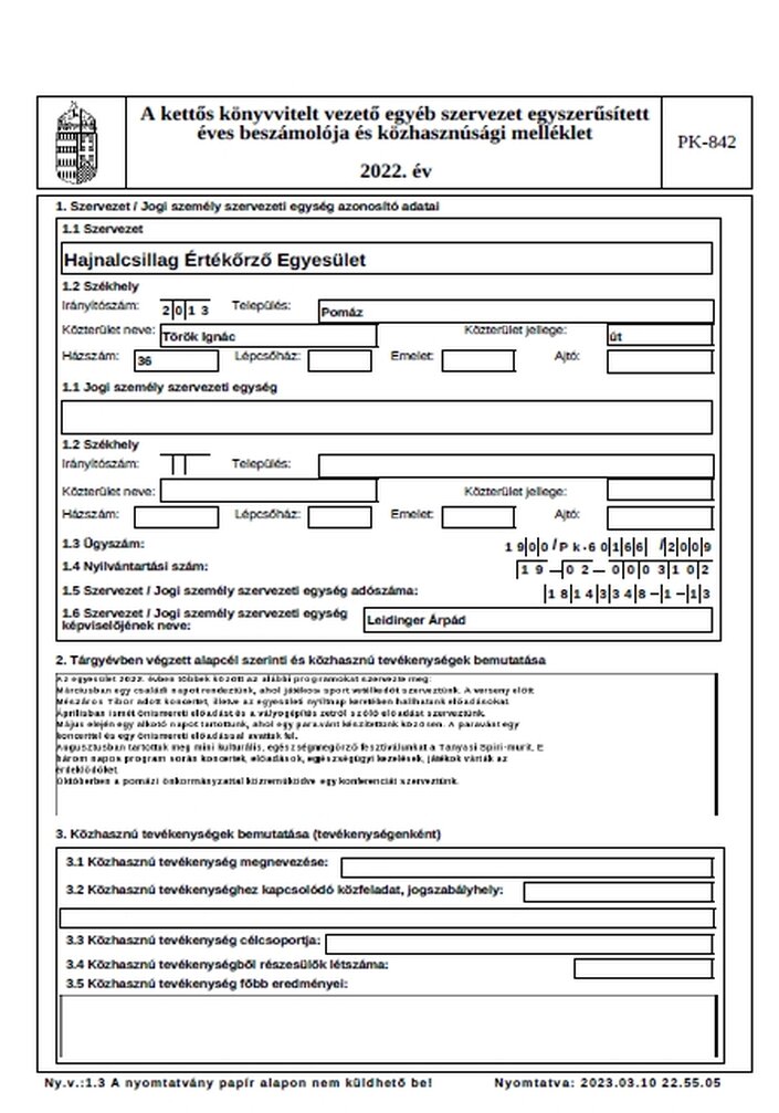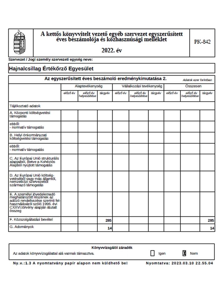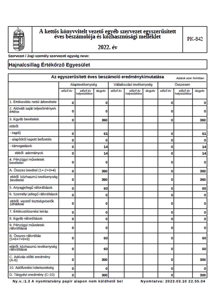 2022. évi beszámoló